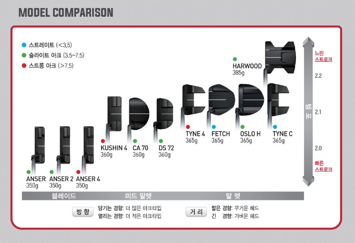 | 스트로크 랩 | 2019 | 말렛형, 혁신적인 무게 밸런스 | 중급 이상 골퍼, 정확한 퍼팅과 밸런스를 중시하는 골퍼 |